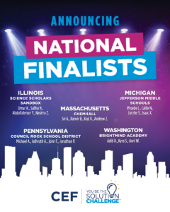 ARLINGTON, VA – CEF is proud to announce the five National Finalist teams advancing to the National Challenge, the final stage of the 2026 You Be The Solution Challenge™, where the top five State Winners from across the country present innovative solutions to real-world problems through science, collaboration, and creativity.